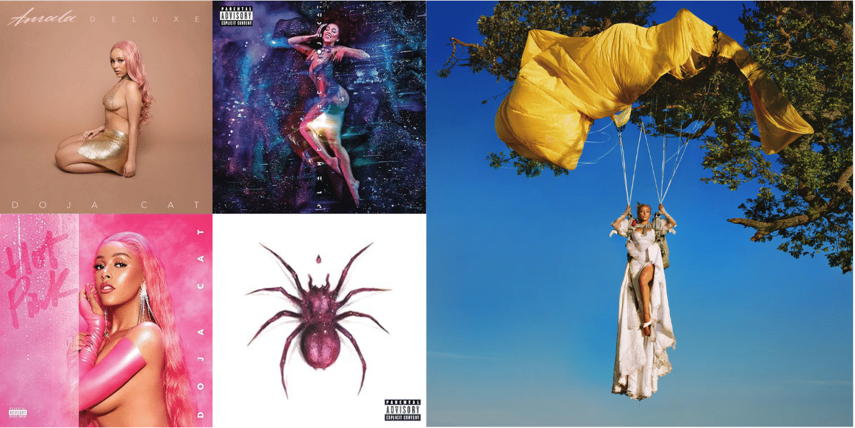 Avec « Amala » sorti en 2018, elle entre véritablement dans le circuit mainstream. C’est aussi le projet du décalage : l’album passe d’abord inaperçu avant de connaitre un rebond spectaculaire grâce à un titre en particulier : « Mooo ! », une parodie d’hymne tournée avec webcam où l’on voit Doja déguisée en vache.